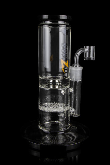 The Cerberus is a straight tube ice rig made of high-quality borosilicate glass that’s 5mm thick. This clear glass rig has a built-in honeycomb perc and ice catcher for some smooth, monster hits.