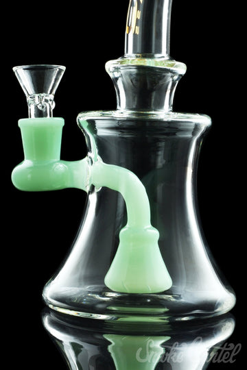 This “Gefion” Showerhead Bell is a clean glass piece. Created by BoroTech Glass, the “Gefion” feature a laid-back bent neck style, this water pipe is perfect for relaxing and those who like hanging out.